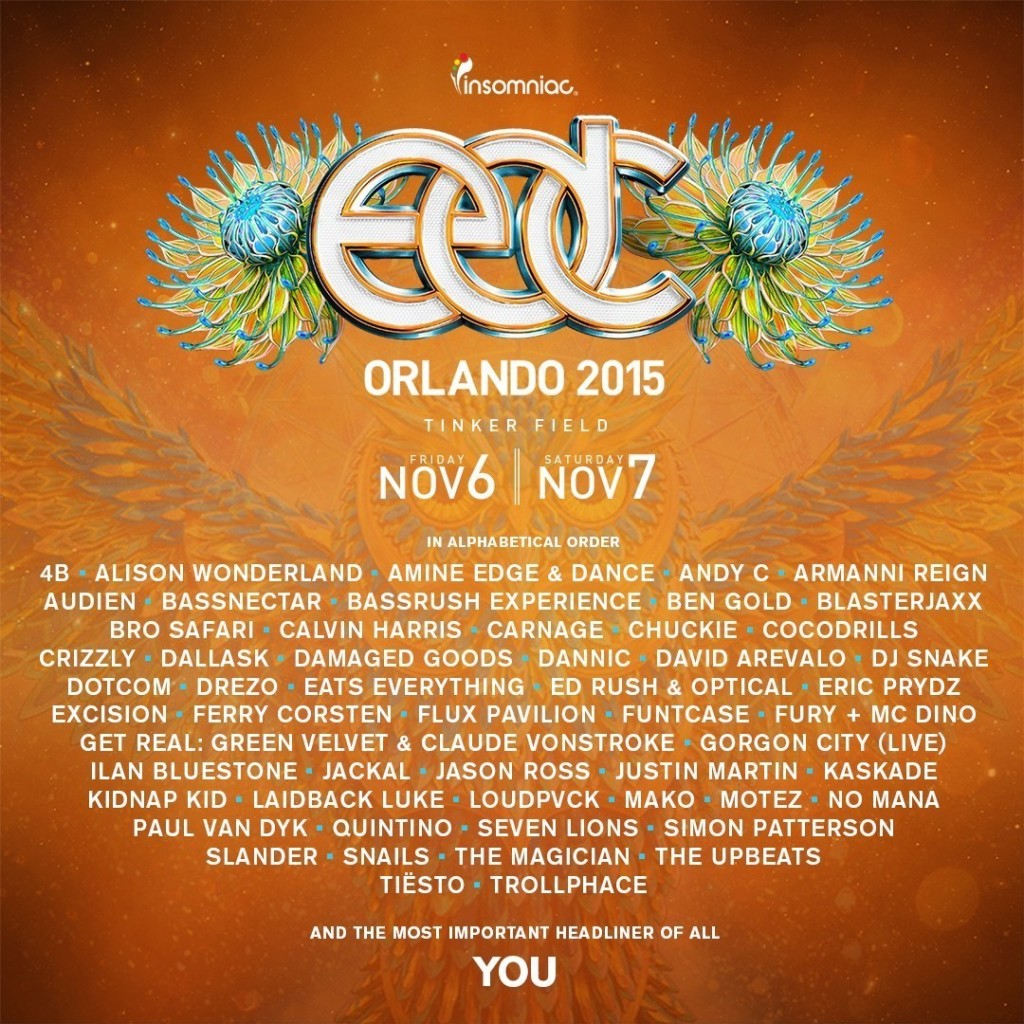 Insomniac anunció el line up de Djs que se presentaran en el EDC Orlando el próximo Viernes 06 y el sábado 7 de noviembre.