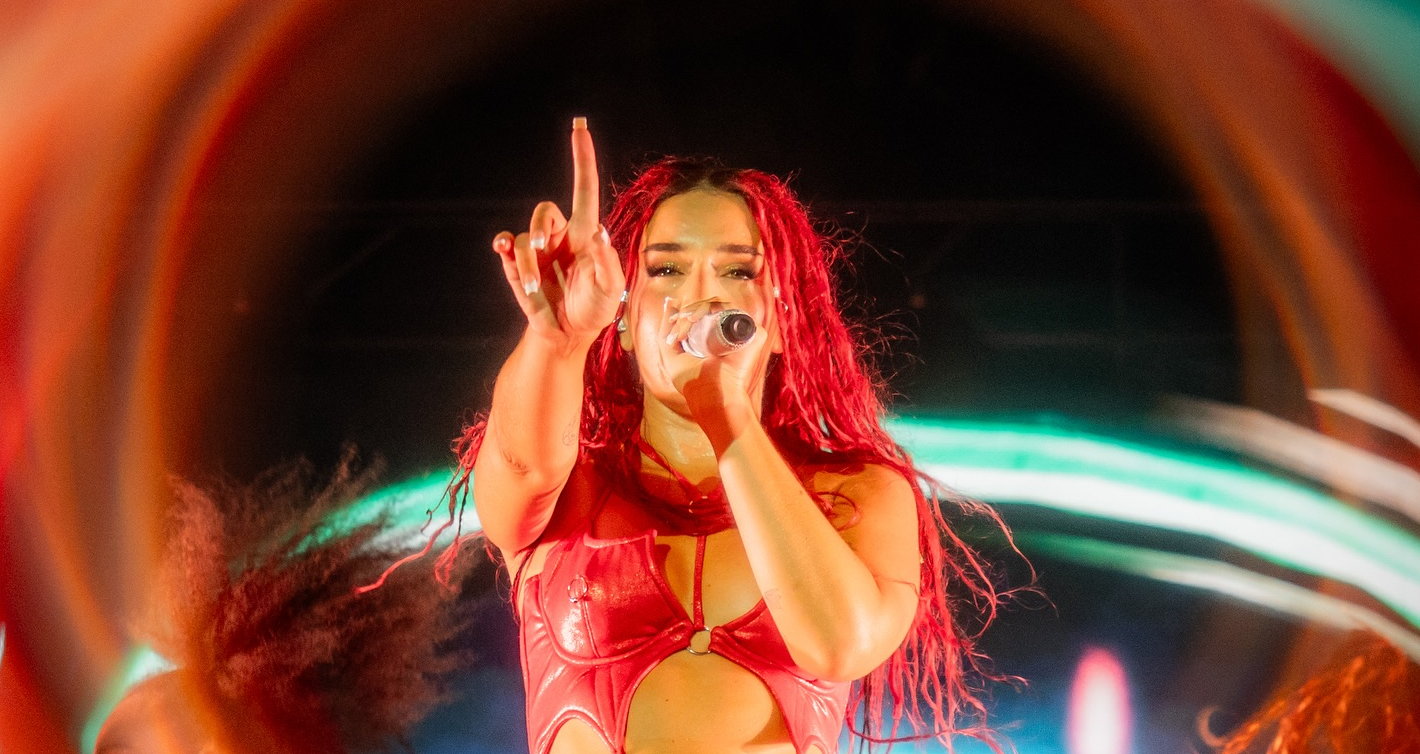 La española Lola Índigo enamoro con su canciones y bailes a los asistentes al festival Dale Mixx en el Parque Fundidora.