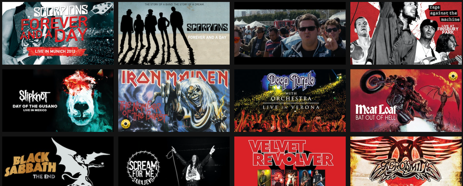 Según el comunicado de prensa, la biblioteca de Thunderflix ya incluye contenido con algunos de los nombres más importantes del metal y el hard rock, incluidos Iron Maiden, Alice Cooper, Rage Against the Machine, Black Sabbath, Aerosmith y más. Del mismo modo, también se menciona al grupo de black metal de culto Watain, insinuando que el servicio también tiene la intención de atender al underground.